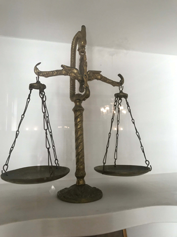 Balança em metal dourado decorativa que pertencia ao gabinete da Presidência |