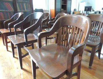 Cadeiras avulsas que pertenceram às Juntas de Conciliação e Julgamento de Curitiba, eram utilizadas nos gabinetes dos magistrados do TRT9 |