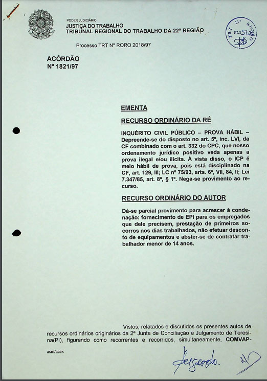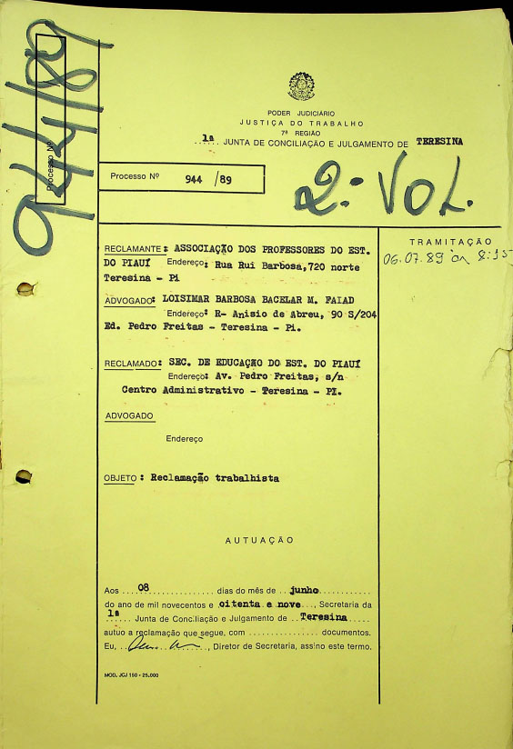 Reclamação trabalhista mais antiga do TRT22 |