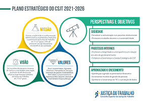 O Plano Estratégico 2021-2026 foi aprovado pela Resolução CSJT nº 301/2021 e passa por processo de revisão.